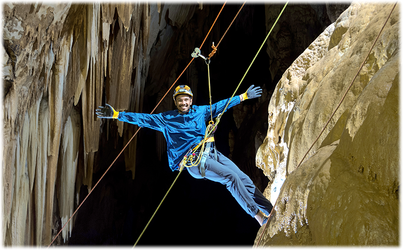 Um roteiro de aventura completo com a exploração do Salão dos Ossos, uma área restrita dentro da Caverna do Diabo, acessada por um emocionante rapel de 40m realizado com toda segurança, feito em um paredão que proporciona uma vista única da caverna! Também faremos a visita a parte turística da caverna, onde conheceremos as curiosidades dessa imponente caverna formada ao longo de milhões de anos. Uma aventura que ficará marcada na sua memória! "Prepare-se para viver uma incrível aventura vertical em uma das cavernas mais impressionantes do mundo!" |